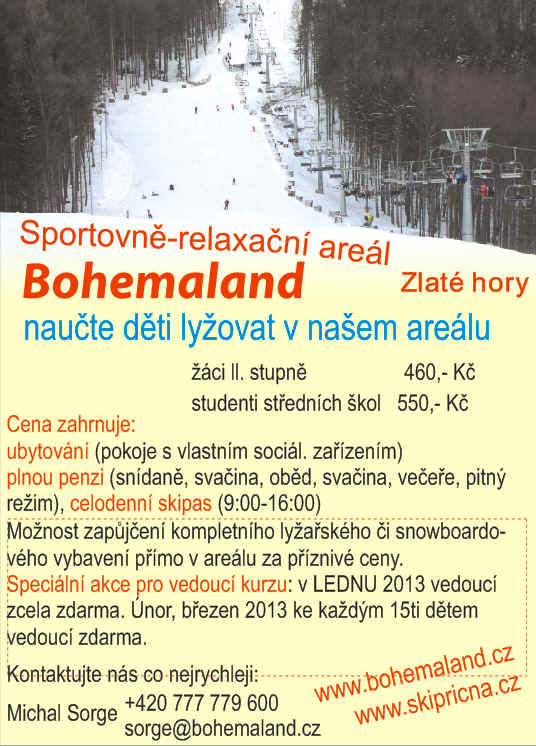Základní ] O úroveň výš ] Autopal ] Třemešek ] Běla ] Beskyd ] Bezruč ] Bílá ] Bobrovník ] Bohema ] [ Bohemaland ] Branná ] Brian ] Bučina ] Camping Rožnov ] Centroprojekt ] Čekyně ] Červenohorské sedlo ] Čubernice ] Domeček Kouty ] Dominika ] Dlouhé stráně ] Dům sv. Josefa ] Eden ] Energetik ] Hotel Červenohorské sedlo ] Hradec  nad Moravicí ] Charbulák ] Chiranka ] Javor ] Jelenovska ] Karlštejn ] Ovčárna ] Pod Smrkem ] Pohoda ] Pokrok ] Praha ] Proletář ] chata Kamzík ] Kamzík ] Kaťuša ] Kopánky ] Krupá ] Kyčera ] Liga 100 ] Liščí mlýn ] Maják ] Malenovice ] Masarykova ] Miloňov ] Mír ] Mnichov ] Morava ] Moravice ] Na Skalkách ] Nikola ] Oaza ] Pepova bouda ] Pohoda (2) ] Prometheus ] Račí údolí ] Ramzovské sedlo ] Ramzová ] Rališka ] Rejvíz ] Restaurace ] Retaso ] RK Losinka ] Ropička ] RS SKM UP ] Ranč u zvonu ] Skalíkova louka ] Slatina ] SVČ ] Svornost ] Selanka ] Seninka ] Severka ] ŠVP Bečva ] Tatra ] U Holubů ] U Orla ] U Kance ] U Kateřiny ] U Studánky ] Unigeo ] Venuše ] Vinium ] Vlčí Důl ] Všemina ] Zákopčí ]