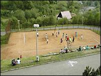 hřiště na odbíjenou (nohejbal), 200 metrů směrem od budovy je také hřiště na malou kopanou, minigolf a